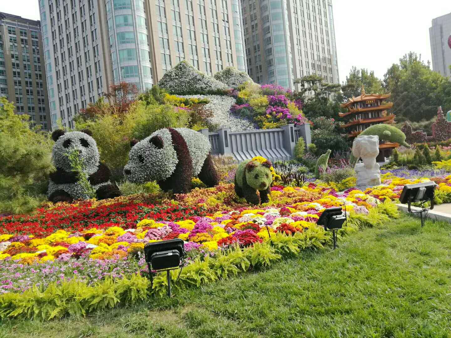 這是2017年10月1日在北京東單路口拍攝的“五位一體”花壇。新華社記者 李賀 攝