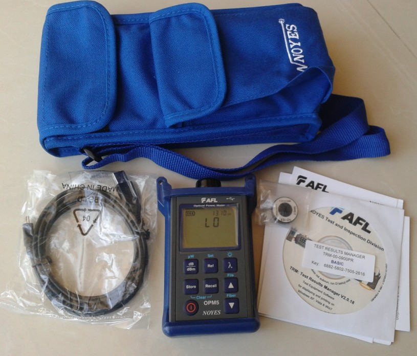 OPM5的標準包裝包括: OPM5主機,保護橡皮套, 便攜式袋子, 五號(AA)電池, USB接線,使用說明書及軟件包。用戶需要預(yù)先選定接頭適配蓋子類別。